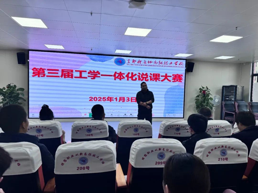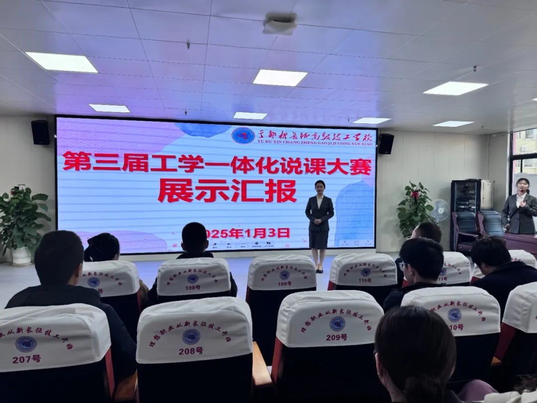为进一步提升工学一体化课程教学成效,提高技能人才培养质量,于都新长征高级技工学校于1月3日下午在校录播教室举行了第三届工学一体化教学说课比赛。本次比赛秉承“思政引领、德技并修,学生中心、能力本位、工学一体”的教育理念,为全体教师提供展示和交流的平台。