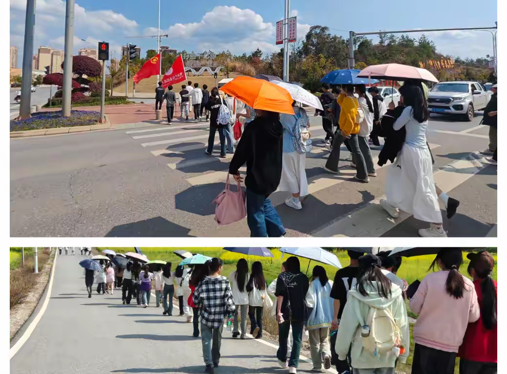 经过带队老师细致的点名,以及对安全纪律的反复强调,我们满怀期待,终于踏上了前往初心广场的徒步征途。一路上,欢快的拉歌声与妙趣横生的知识问答交织在一起,不仅拉近了师生之间的距离,也让每个人都在轻松愉悦的氛围中感受到春天蓬勃的生机。