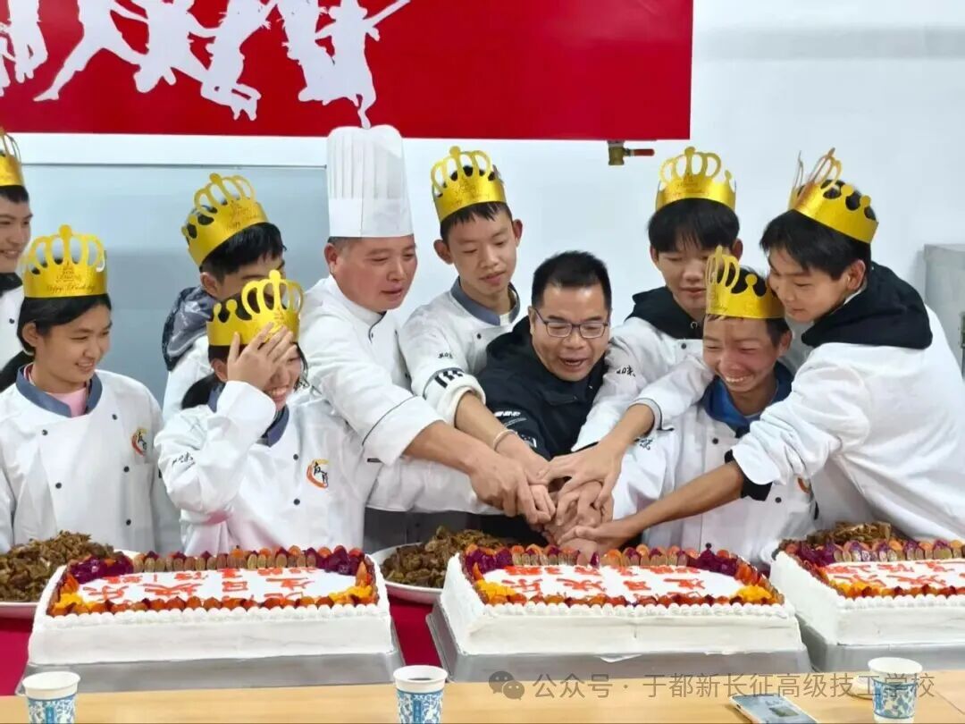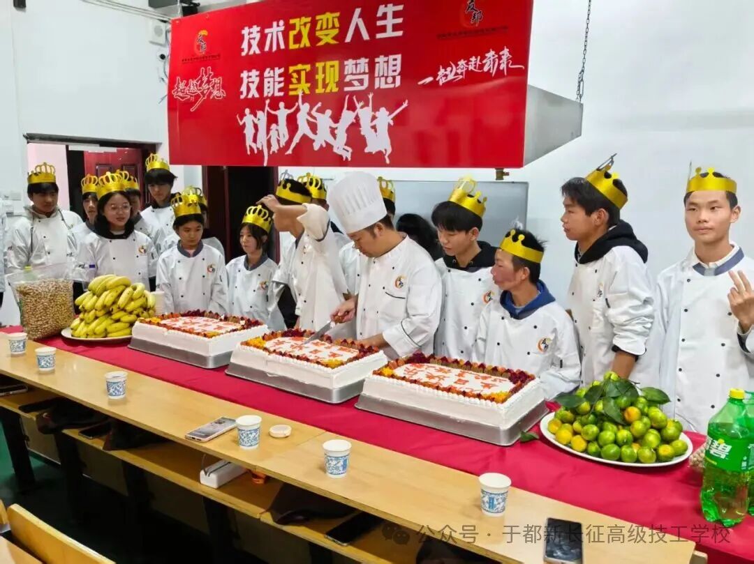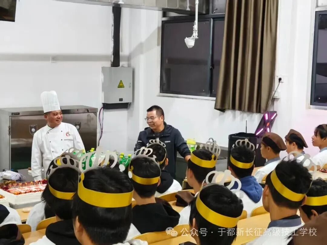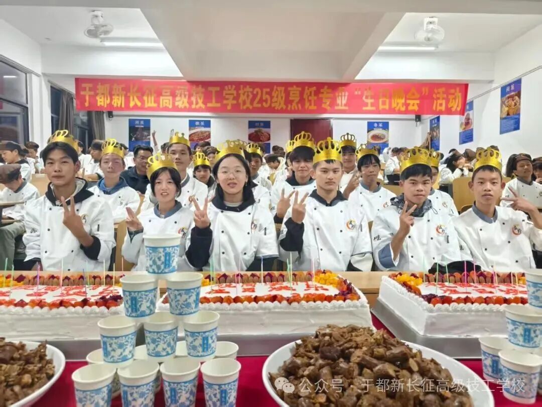 10月23日,于都新长征高级技工学校25级烹饪专业“生日晚会”在校中餐教室温情启幕,灯光与欢笑交织,为秋夜注入满满暖意。