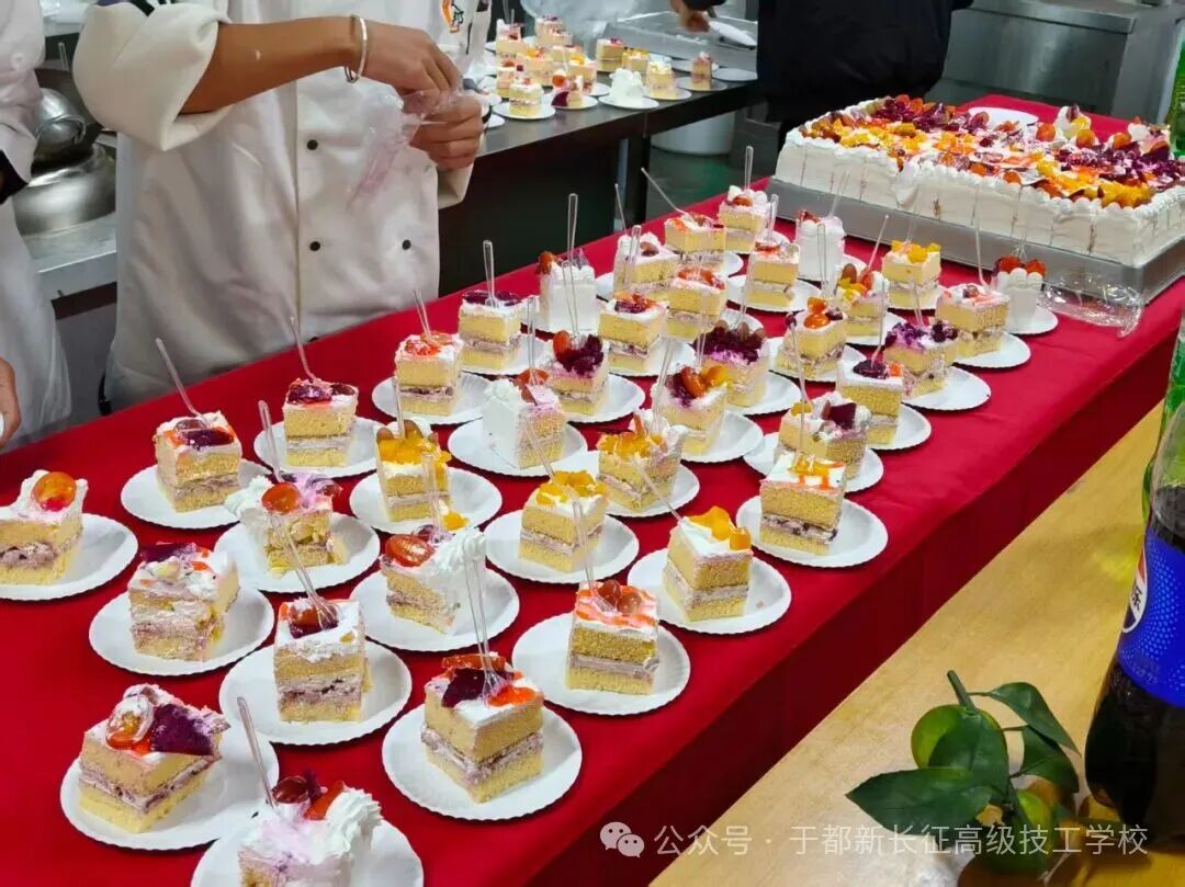现场处处是用心:香蕉、橘子等新鲜水果错落摆放,花生、饮料为氛围添彩;更有中餐专业老师亲手烹制的卤水小吃,香气扑鼻;面点老师精心定制的生日蛋糕,每一处裱花都藏着对学子的关爱,尽显专业特色与师生温情。