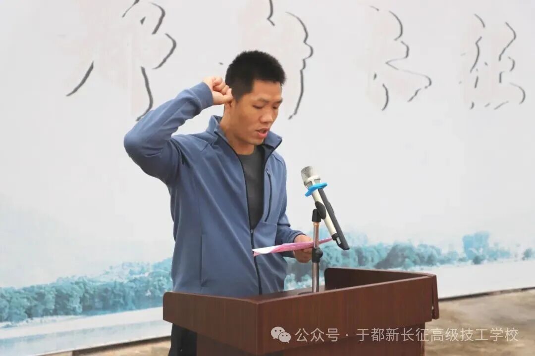 在全场热烈的期盼中,学校党支部书记、校长管青春同志庄严宣布:“于都新长征高级技工学校2025年秋季运动会,开幕!”话音落下,掌声如潮,彩旗舞动,盛会启航。