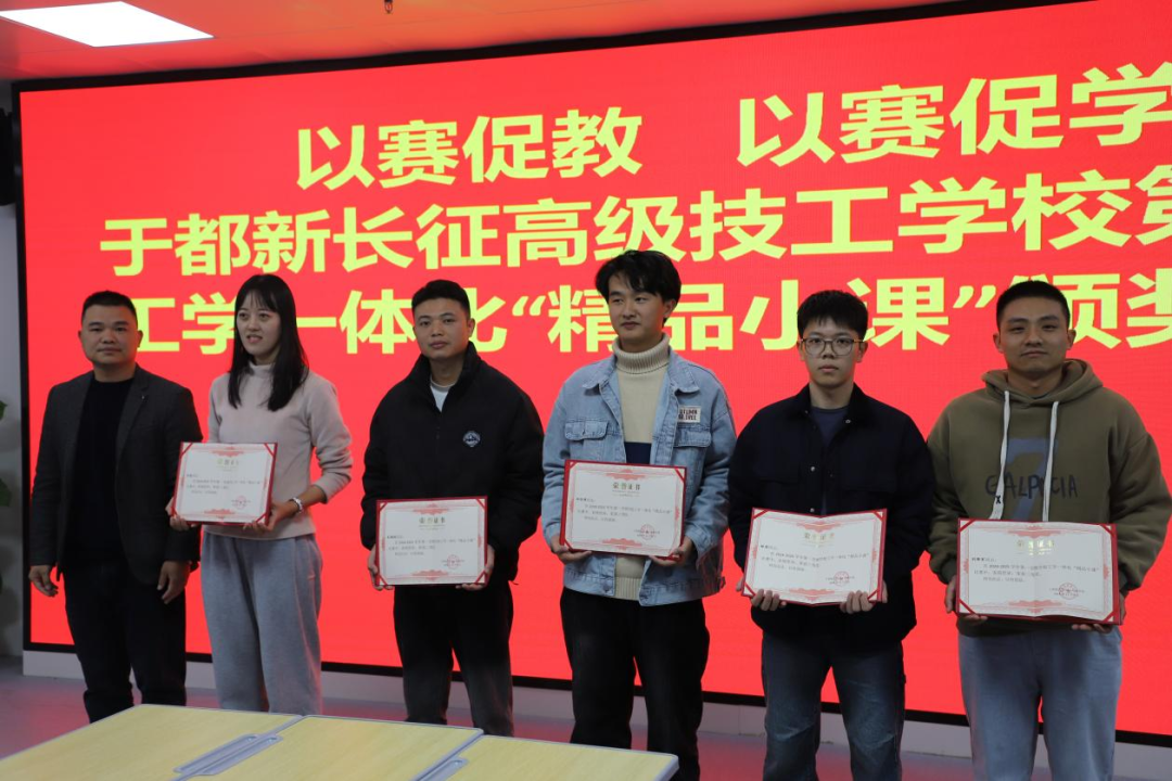 最后,郭称砣副校长对本次比赛进行总结,郭称砣副校长强调:本次精品小课比赛取得圆满成功,离不开全体教师的努力,以及参赛教师的辛苦付出,通过这次比赛一体化教学模式在学校得到了推广,为学校进一步发展打下基础。同时也呼吁全体教师不断加强自身学习,不断提升自我,成长为行业专家,同时还勉励全体老师继续保持积极向上的态度,不断提高学校教学质量,讲话结束后为获奖选手颁发荣誉证书。