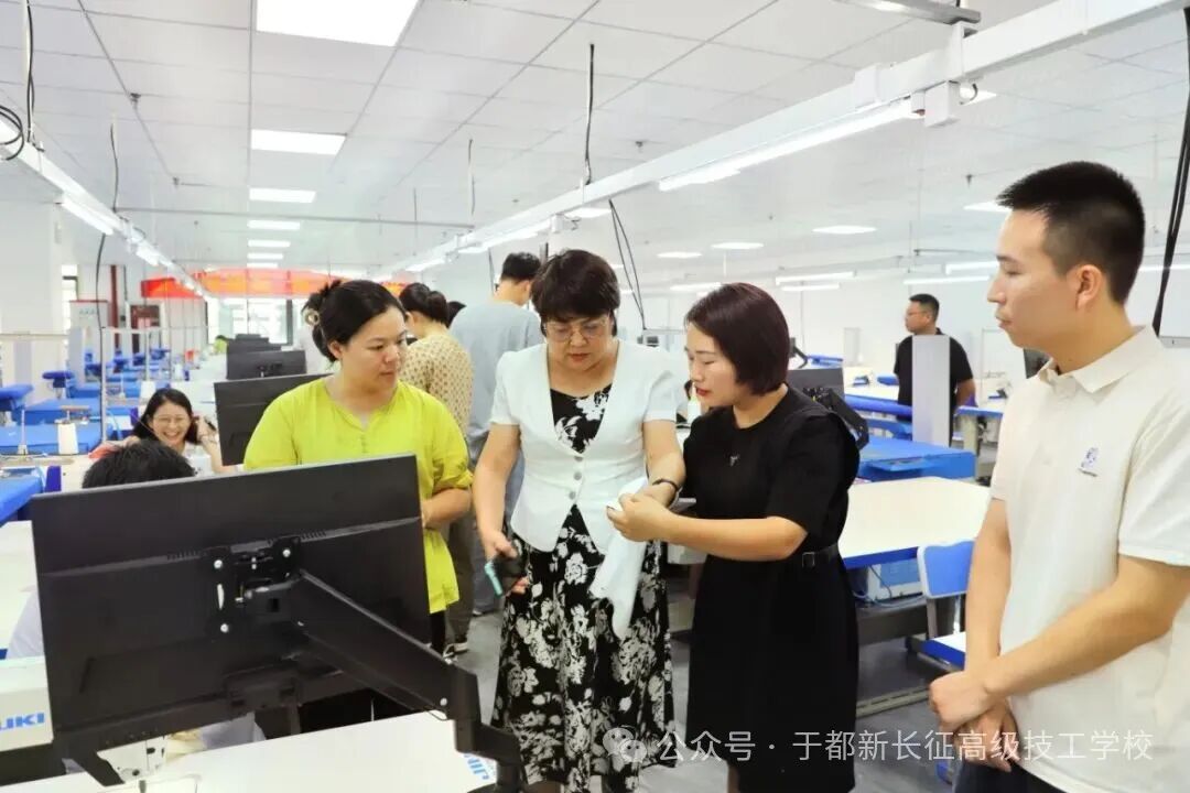 刘裕裕直接走进培训基地服装一体化工艺室现场,观摩了针对江西兴佰翔体育用品有限公司员工举办的缝纫技能提升培训。课堂上,我校服装专业教师廖远斌正围绕“服装部件制作(女衬衫袖开衩)”进行细致讲解与实操演示。在廖老师的指导下,学员们认真学习女衬衫袖开衩的制作要领,从裁剪到缝合,每个环节都一丝不苟。