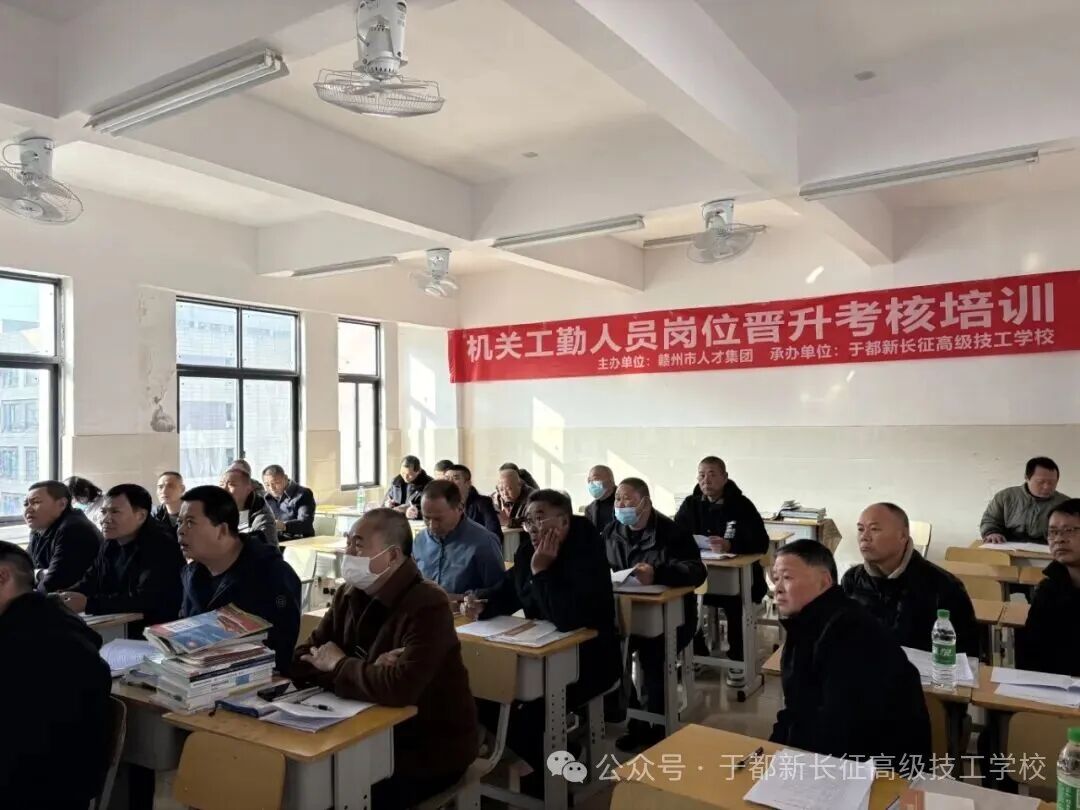近日,赣州市人才集团组织实施的2025年机关事业单位工勤人员技术业务水平考核第十期、第十一期培训班在我校顺利开展。本次培训考核面向于都县、宁都县、大余县已申报的全体工勤人员,涵盖社会工作者、工程测量员、钢筋工、花卉园艺师、汽车维修工等多个工种,旨在进一步提升工勤人员的职业技能与业务素养,为机关事业单位人才队伍建设注入新动力
