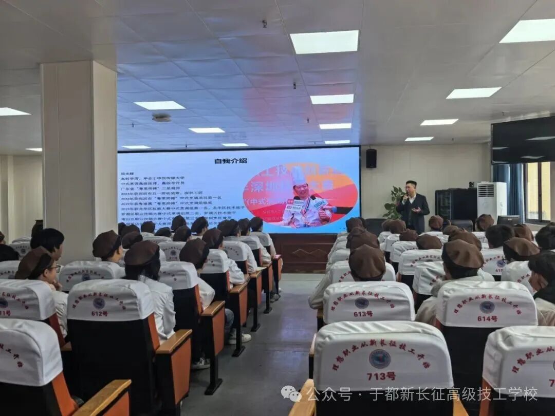 在匠勤楼三楼会议室,深圳市深德高级技工学校烹饪大师周光辉与我校现代服务系部师生,就烹饪专业发展方向、课程设置以及职业技能竞赛备赛经验进行了深入分享。随后,周大师走进我校烹饪实训室,为我校师生带来了一堂精彩的烹饪专业示范课,其娴熟的技艺与深入浅出的讲解,令在场师生受益匪浅。