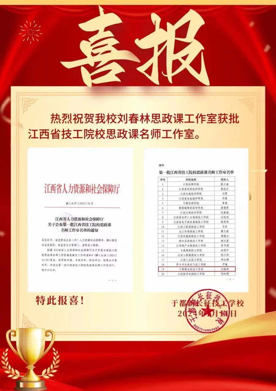 1.我校刘春林思政课工作室获批江西省技工院校思政课名师工作室。