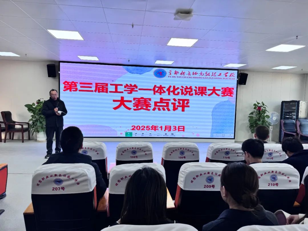 为进一步提升工学一体化课程教学成效,提高技能人才培养质量,于都新长征高级技工学校于1月3日下午在校录播教室举行了第三届工学一体化教学说课比赛。本次比赛秉承“思政引领、德技并修,学生中心、能力本位、工学一体”的教育理念,为全体教师提供展示和交流的平台。