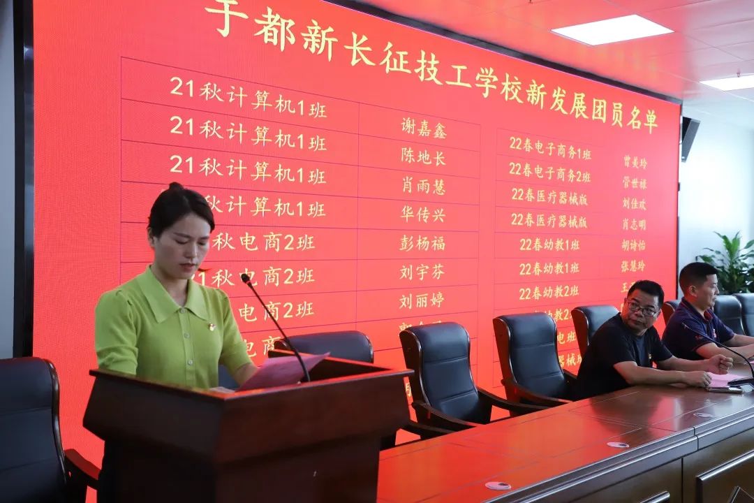 星星火炬伴随我们成长,我们要做新时代的青年,共青团指引我们向新的目标进发。6月1日上午,于都新长征技工学校2023年新团员入团宣誓仪式在匠勤楼三楼会议室举行。仪式由团委书记李陈秀主持,学校党支部书记、校长管青春和副校长郭称砣出席仪式并讲话,于都新长征技工学校新老团员及校学生干部参加仪式。
