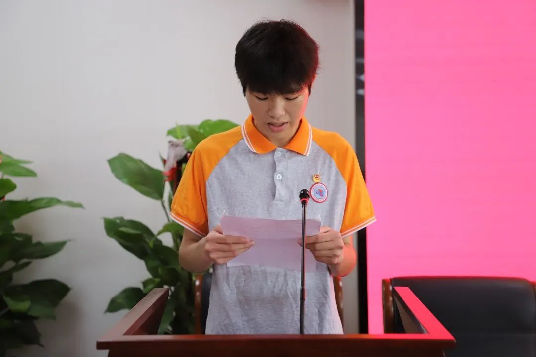 新团员代表谢嘉鑫同学表达了内心的喜悦和自豪感,说出了所有新团员的心声,立志努力学习,做品学兼优的好学生,并号召全体新团员努力学习、严格要求自己,做一名优秀的共青团员,用青春谱写人生华丽的乐章。