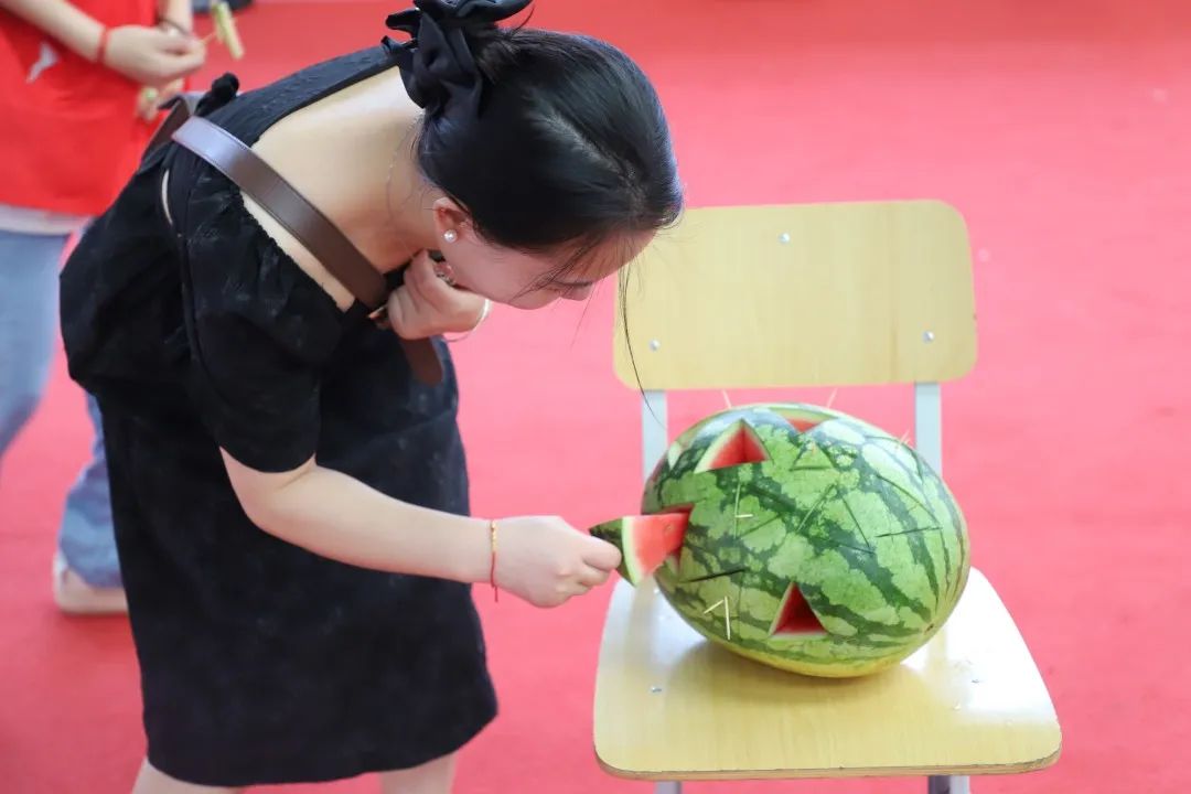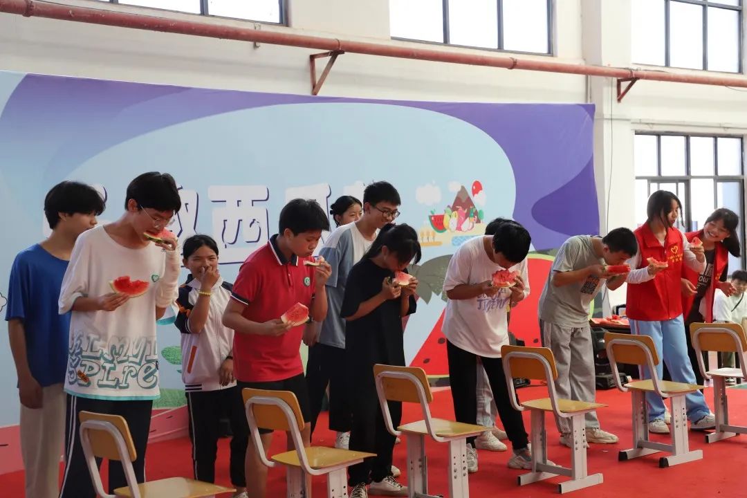 欢乐西瓜节最有趣的要数“吃西瓜比赛”,同学们分好组后个个蓄势待发,活动一开始便众生百态,有的狼吞虎咽,大快朵颐;有的细嚼慢咽,顾及形象,逗得全场观众捧腹大笑。