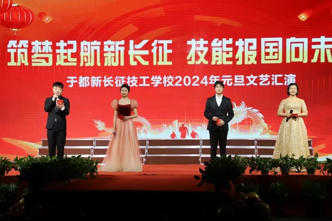 玉兔随风辞旧岁,金龙腾云迎新年。为丰富校园文化生活,展现我校学生昂扬向上的精神风貌,2023年12月29日晚,在这辞旧迎新之际,于都新长征技工学校隆重举办2024年“迎新庆元旦 筑梦向未来”元旦文艺汇演