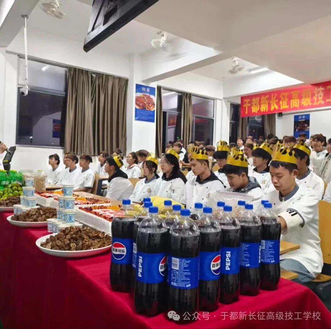 10月23日,于都新长征高级技工学校25级烹饪专业“生日晚会”在校中餐教室温情启幕,灯光与欢笑交织,为秋夜注入满满暖意。