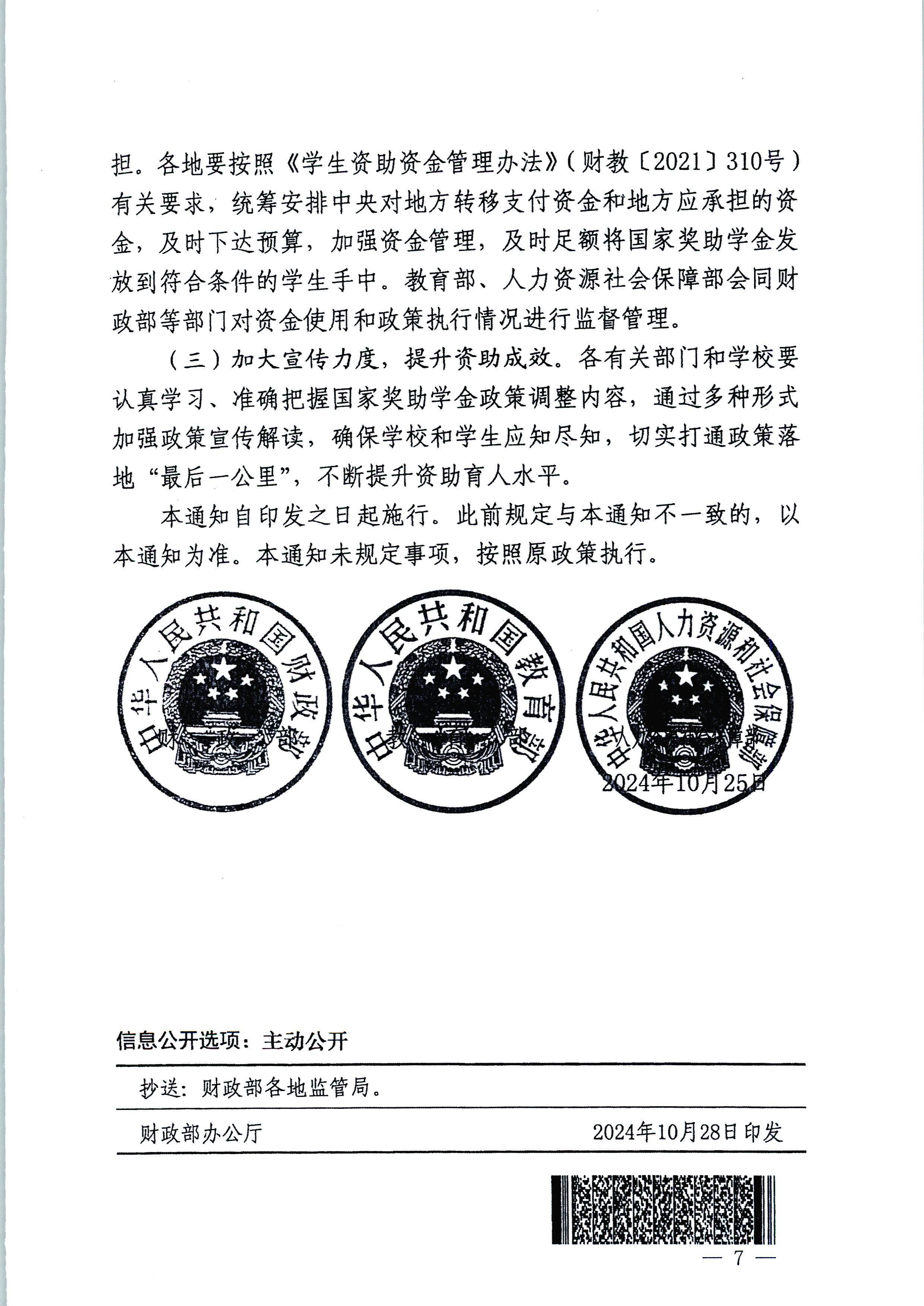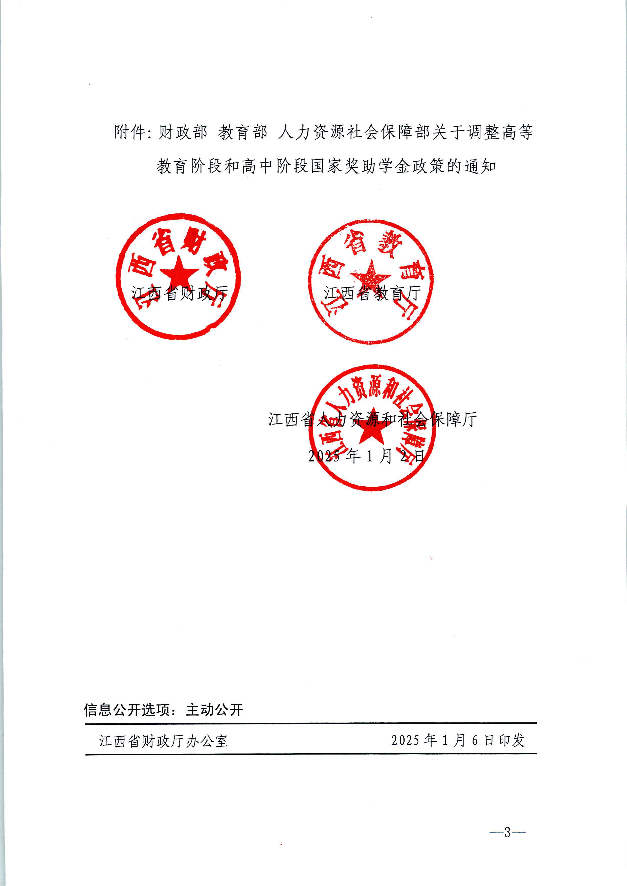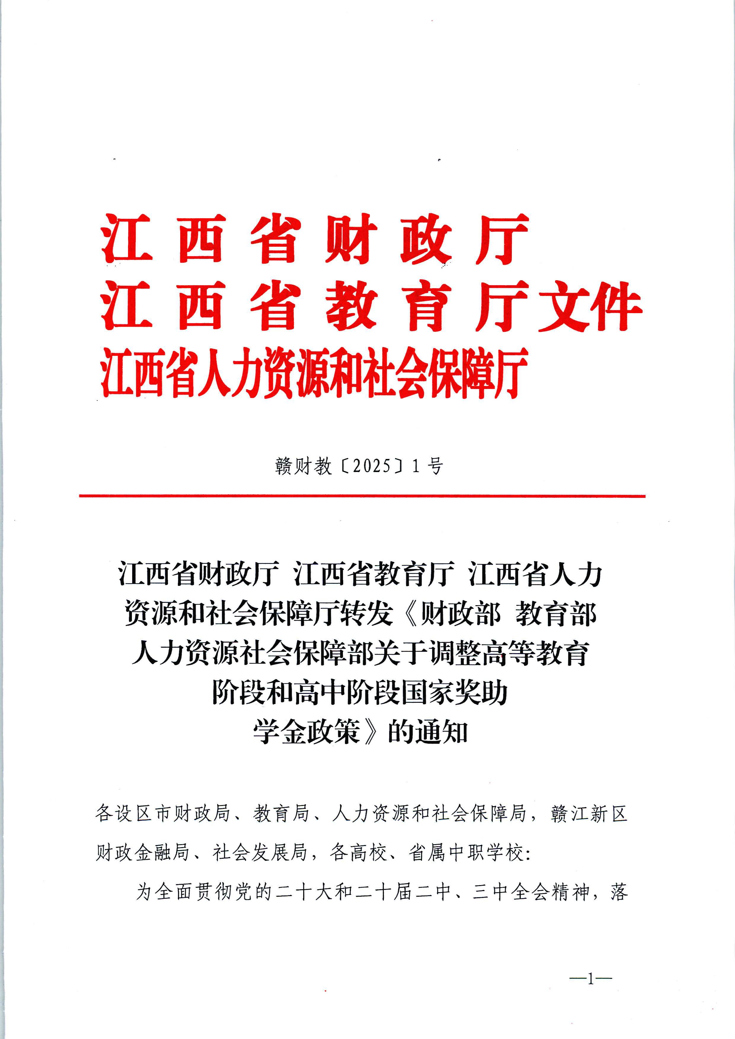 江西省财政厅江西省教育厅江西省人力资源和社会保障厅转发《财政部教育部人力资源社会保障部关于调整高等教育阶段和高中阶段国家奖助学金政策》的通知