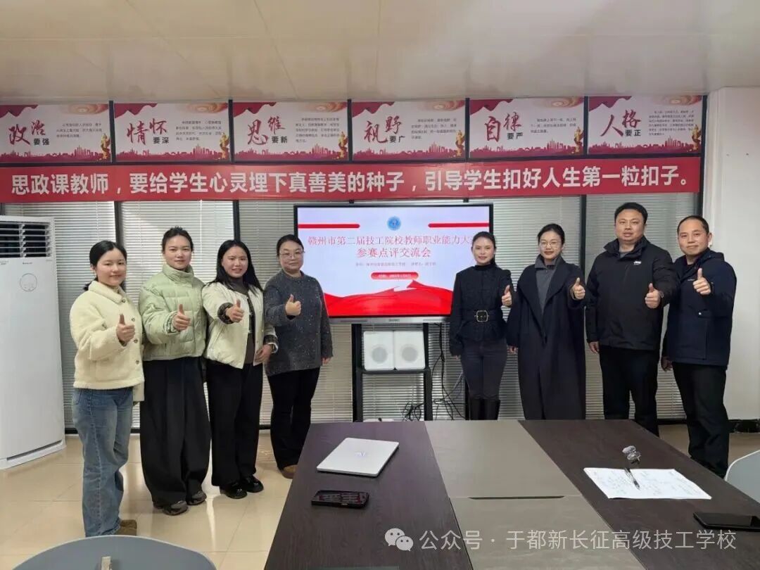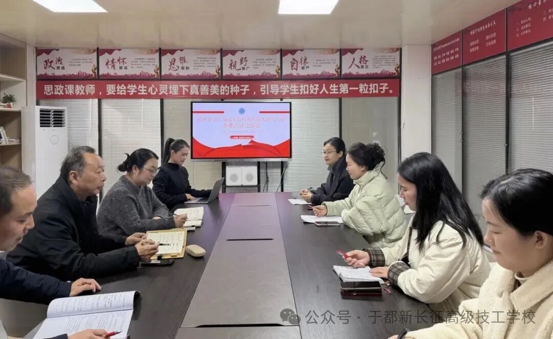 深圳市深德高级技工学校教研室周子渲主任在匠勤楼七楼思政工作室,就我校在赣州市第二届技工院校教师职业能力大赛中的参赛情况进行细致点评与交流,在教学设计、现场展示、答辩技巧等方面提出了许多可行性建议。