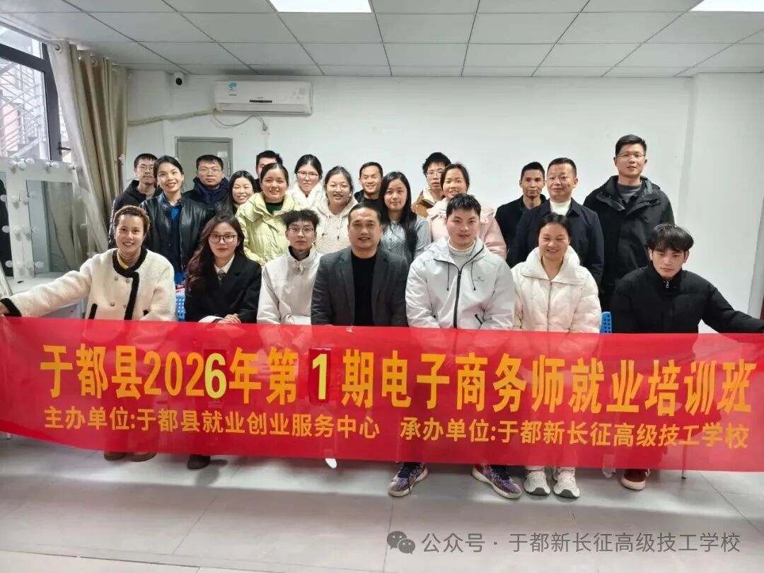 2026年1月5日至14日,由于都县就业创业服务中心主办、于都新长征高级技工学校承办的2026年第1期电子商务师就业培训班,历经10天的集中学习,于1月14日圆满落下帷幕。数十名学员带着扎实的电商实操技能,开启了职业发展的新路径。