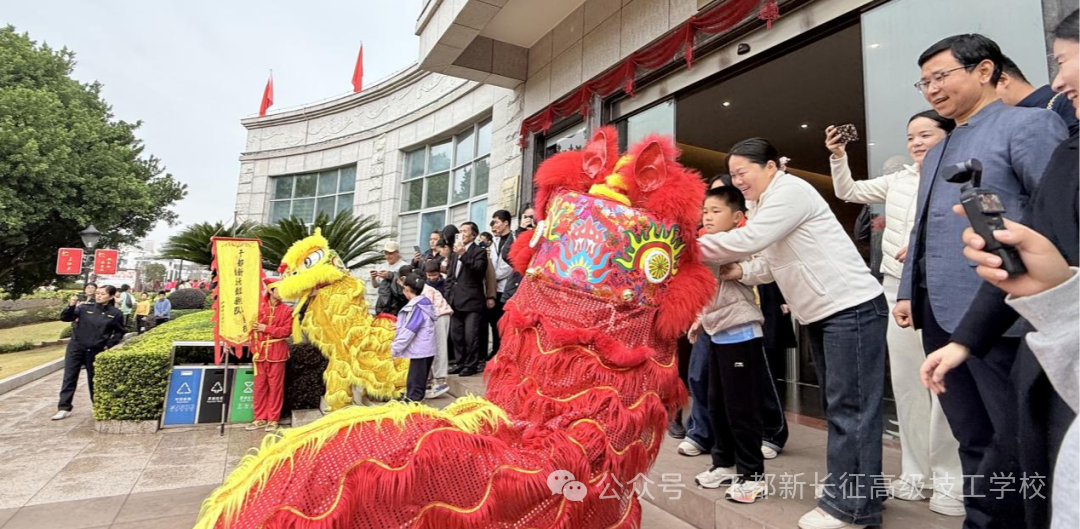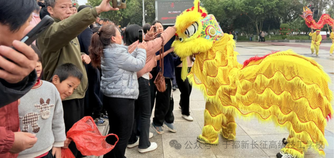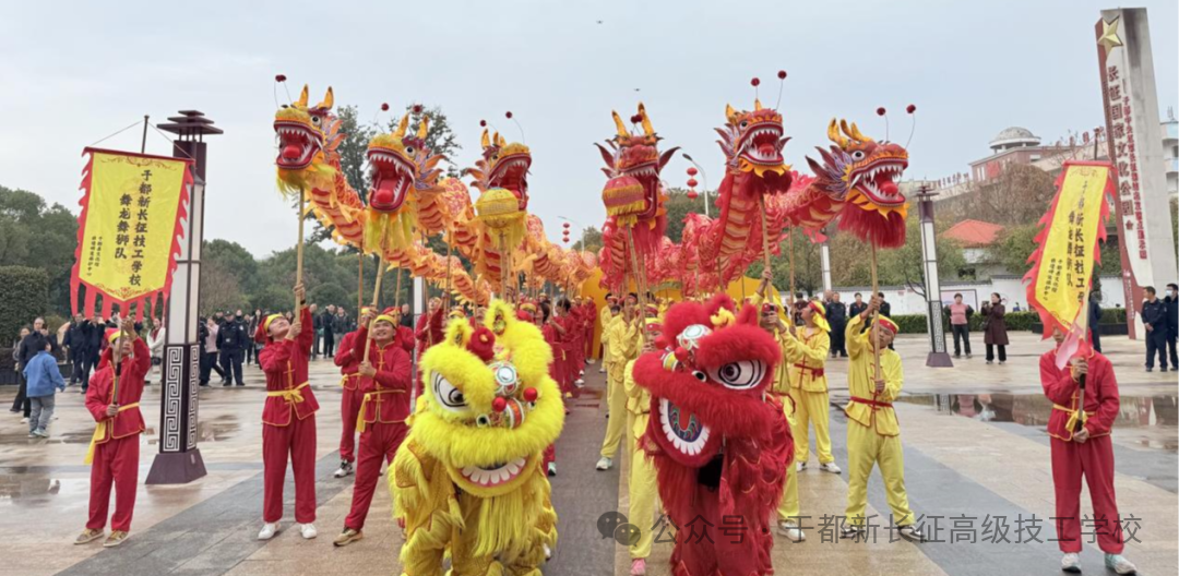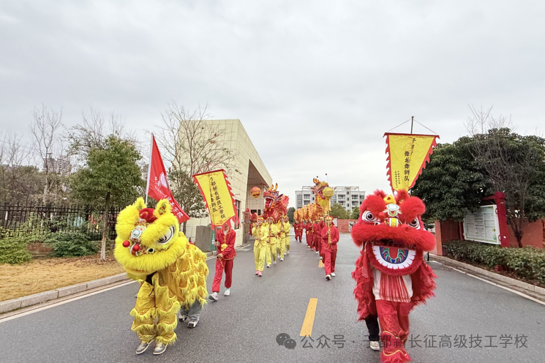 巡游的最后一站,舞龙舞狮队载誉返回于都新长征高级技工学校。金龙绕校而行,瑞狮入园送福,为校园填满新春喜庆。这场新春巡游,既是我校对中华优秀传统文化的传承与弘扬,更是对师生实践能力、团队精神的锤炼。新的一年,我校将继续深耕非遗传承,以龙马精神培育德技并修的时代新人,奔赴新程。
