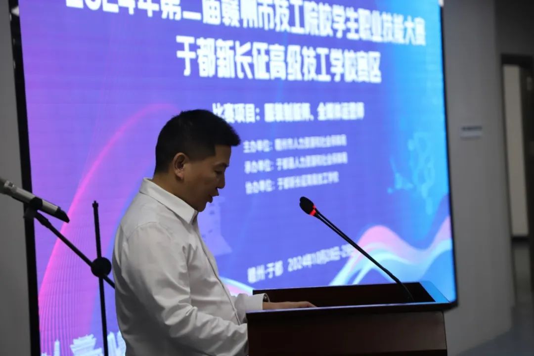 开幕式上,于都县人力资源和社会保障局党组成员、副局长赖军同志致欢迎辞。他表示,本次比赛为全市广大技能人才交流心得、展示技艺提供了广阔的舞台,对有效推进技工院校深化教学改革和提升办学水平,进一步提高职业教育专业教师技能水平和实操能力,具有重要现实意义。希望广大参赛选手能够在比赛中展现自己的风采和水平,积极参与技艺交流,全面提升技能水平,激发并引领广大青年走上技能成才之路,为国家的技能进步贡献力量。