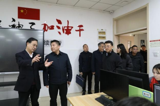 在滨州市高级技工学校党委副书记、校长张洪青,党委委员、副校长刘仲凯的陪同下,管青春同志一行参观了东方红广场、实训基地、数字工坊及北平楼伟人塑像厅、红色藏品展厅、党史展厅及国防教育展厅,感受滨州市高级技工学校将职业教育和红色教育相结合的办学模式,并就校园文化建设、学生管理、校企合作、招生就业等工作进行交流。