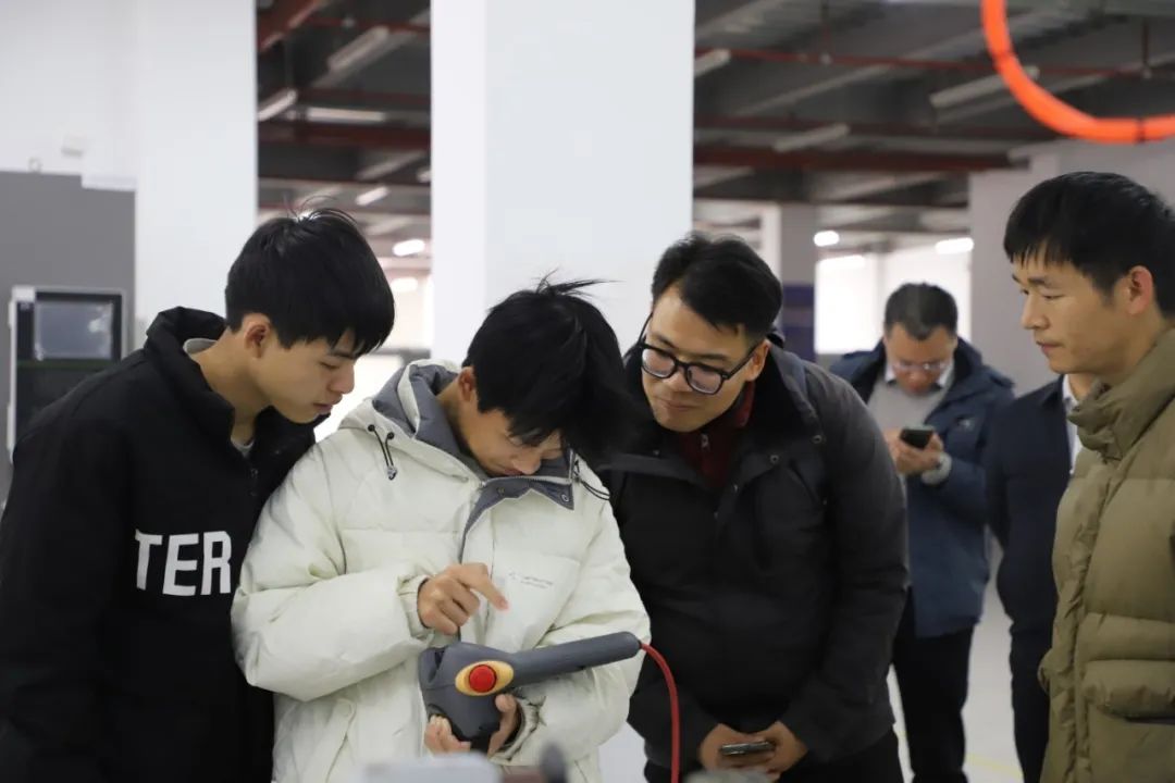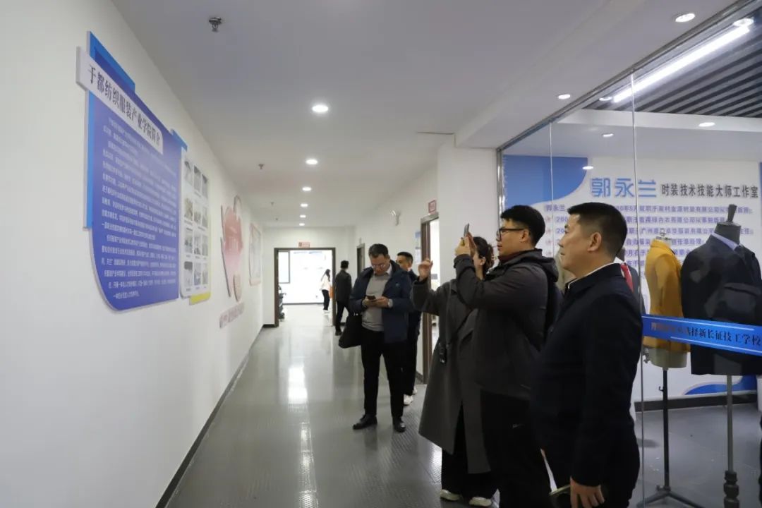 在学校党支部书记、校长管青春等领导的陪同下,贾伟同志一行先后参观了养老实训室、机电一体化实训室、服装大师工作室、服装特种设备机房、服装打版机房、服装一体化实训室、服装工艺室等实训场所。