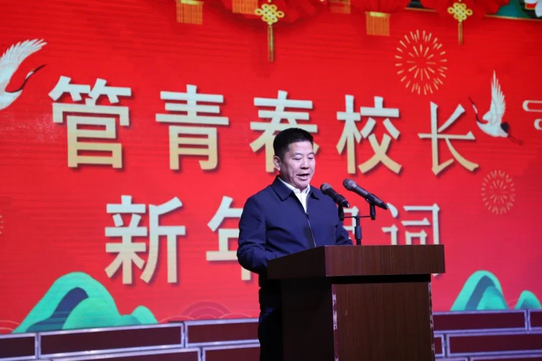汇演伊始,学校党支部书记、校长管青春向全体师生致以新年的祝福,他回顾了过去一年学校的发展成就,对全体师生的辛勤付出表示诚挚的感谢。他表示,在新的一年,希望全体师生继续以更加坚定的信念,更加昂扬的斗志和更加饱满的精神共创学校新的辉煌。