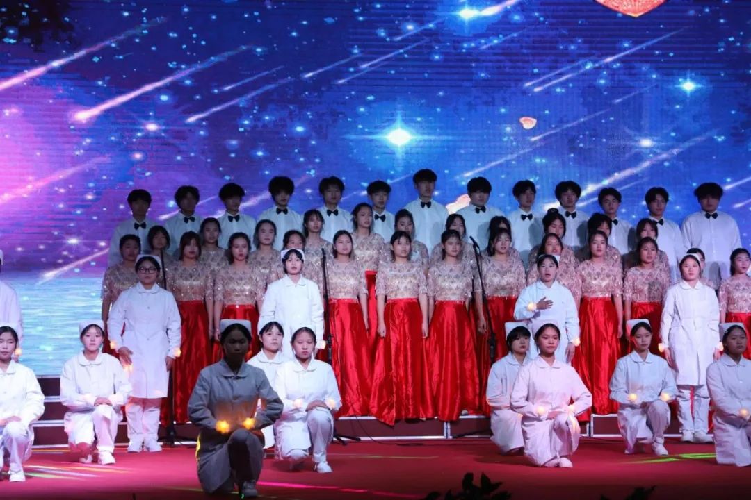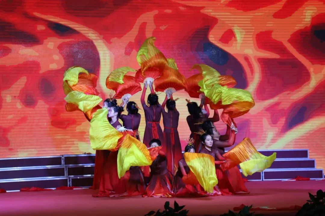 在舞台的聚光灯下,舞蹈社团同学们婀娜的舞姿犹如星星之火缓缓升起,再现革命先辈们当年怀揣理想与热血的奋斗历程。