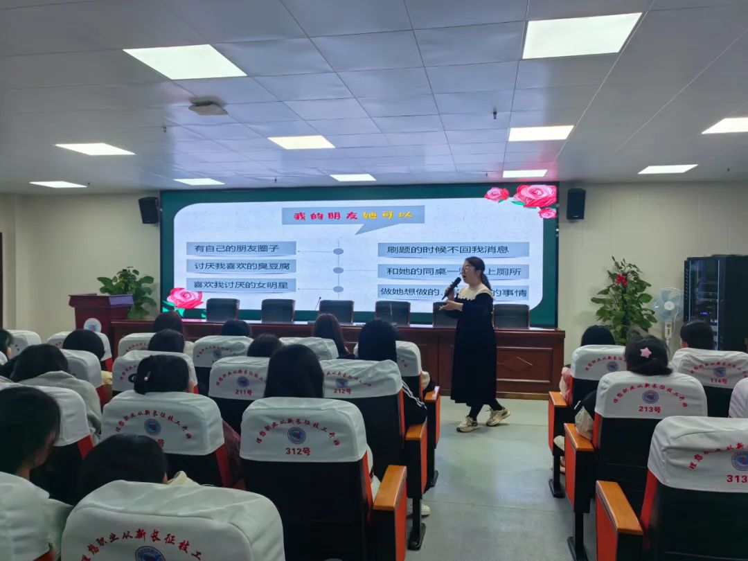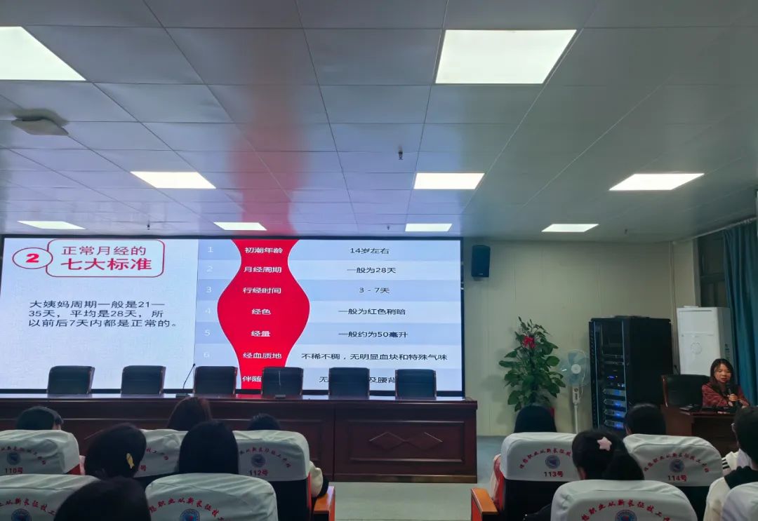 曾春燕老师则从两个方面进行了阐述:一是青春期少女如何保养,二是引导学生正常异性交往。