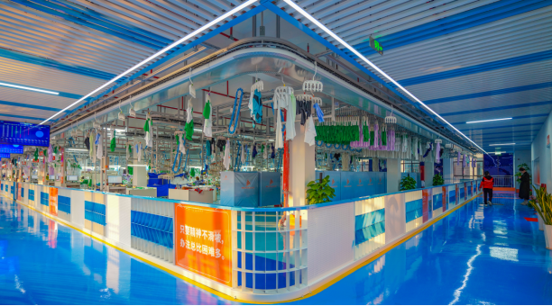 公司占地 50 亩,厂房面积达 40000 多平方米,员工 600 多名。生产设备先进,拥有 26 条生产吊挂流水线、全自动化裁剪系统以及 ERP 大数据智造,取代了传统生产模式。同时,公司设有设计中心、研发中心、数字化中心、服装展示中心以及服装创意孵化馆。
