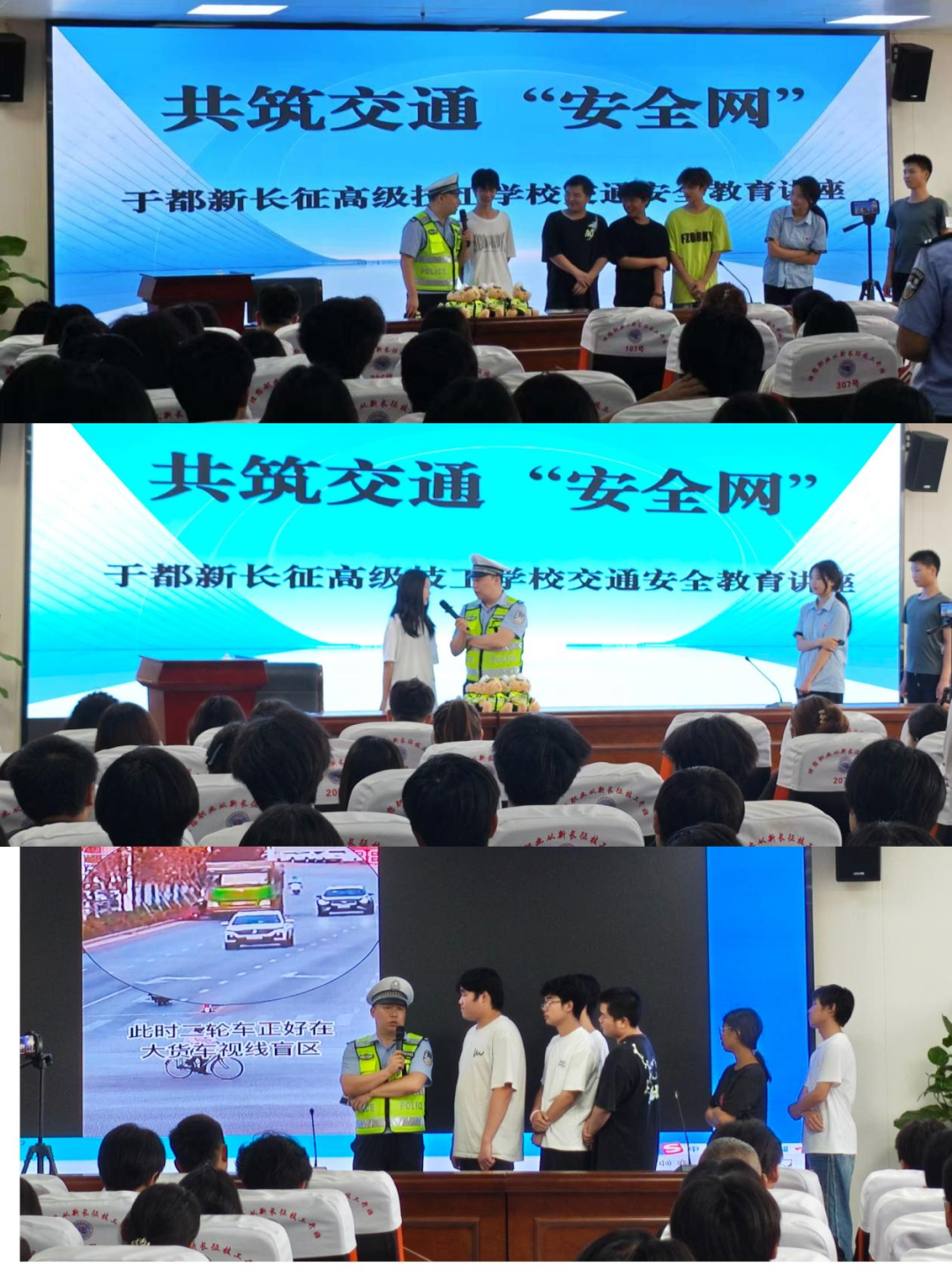 为提升师生道路安全防护能力,筑牢校园交通安全防线,5月19日下午,于都新长征高级技工学校特别邀请县交警大队宣传科金泉科长入校,开展以“共筑交通‘安全网’”为主题的交通安全宣讲活动。活动通过案例剖析、法规解读与互动问答等形式,引导师生树牢交通安全意识,共同营造安全有序的出行环境。