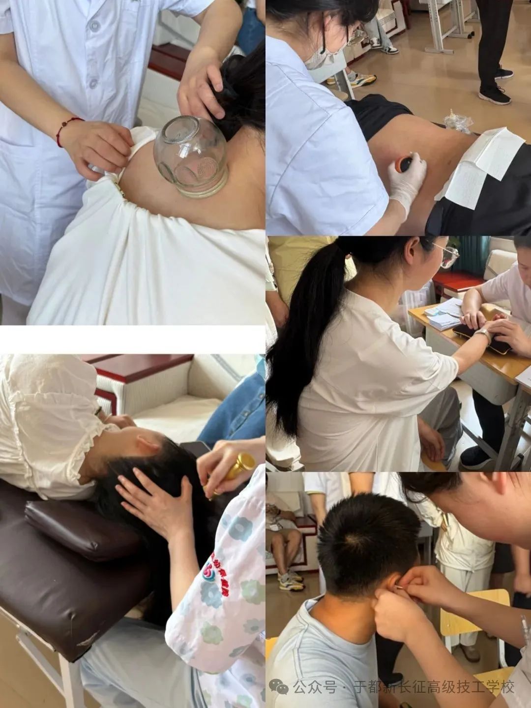 开展心肺复苏培训的同时,接待室化身中医养生体验区,基础健康测量、中医师看诊、中医适宜技术体验三大功能区域高效协同运转。火龙罐、葫芦灸、耳穴压豆等经典传统中医疗法精彩亮相,为全体教师带来沉浸式中医文化体验。教师们在10-15分钟的体验过程中,不仅切身感受到了中医文化的独特魅力,更通过个性化的中医调理方案有效缓解工作疲劳。专业的中医服务与丰富的养生体验,获得了教师们的一致好评与广泛认可。