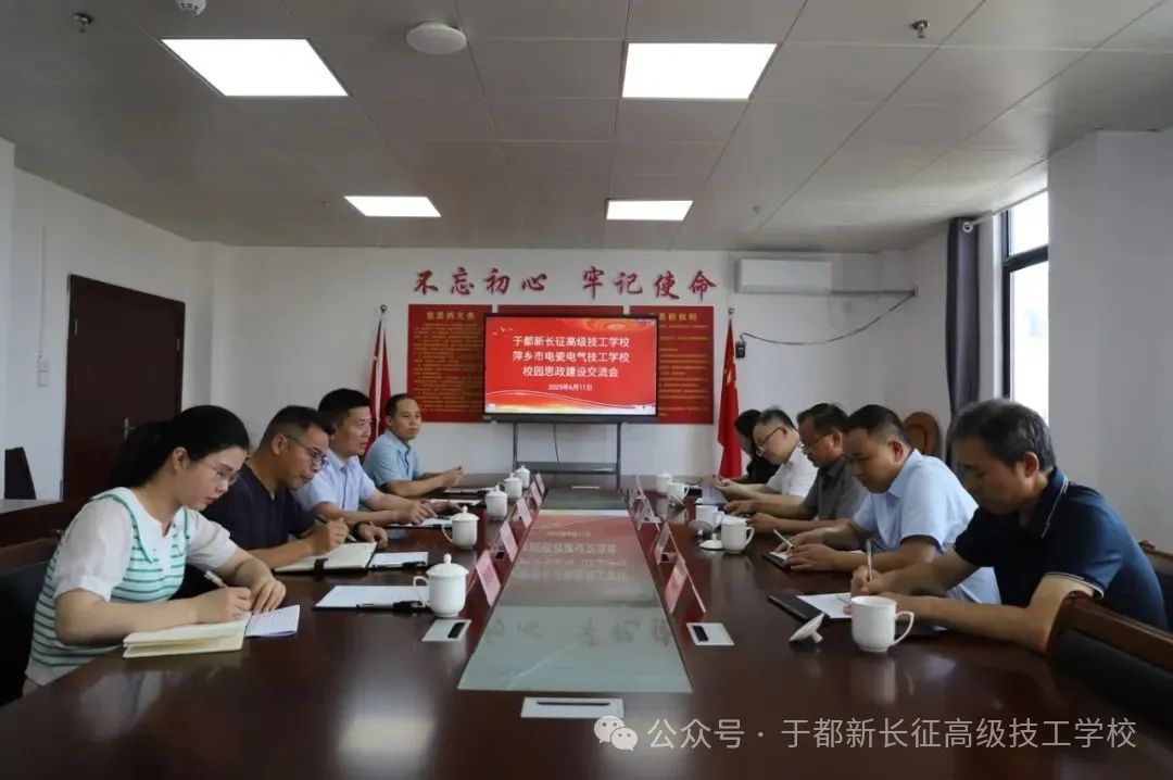 冯勇校长对我校的热情接待和精心安排表示衷心感谢,高度评价了我校鲜明的办学特色和显著的育人成果。他介绍了萍乡市电瓷电气技工学校的基本情况以及此行的主要目的——学习借鉴我校在思政课程建设、校园文化打造、技能人才培养等方面的先进经验,寻求合作契机。