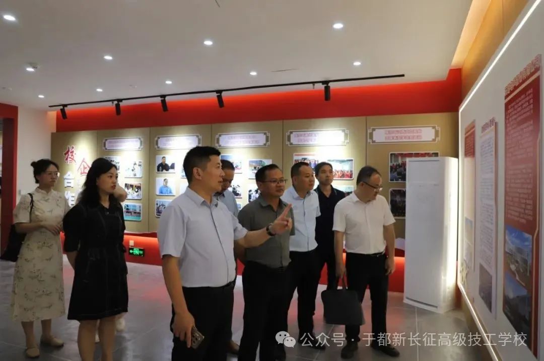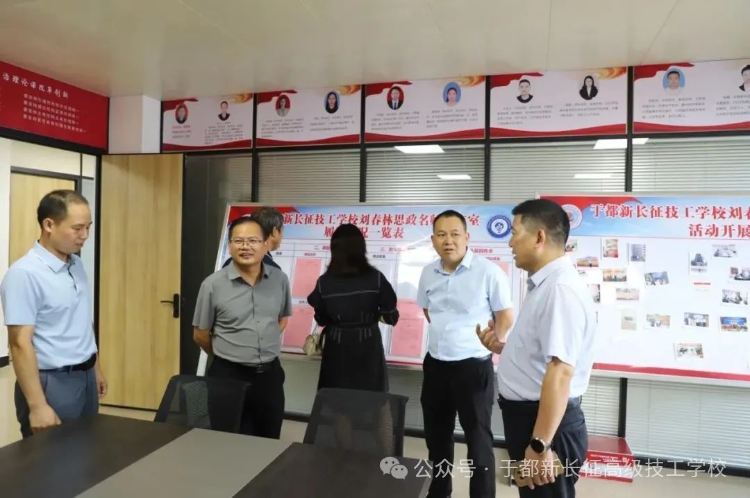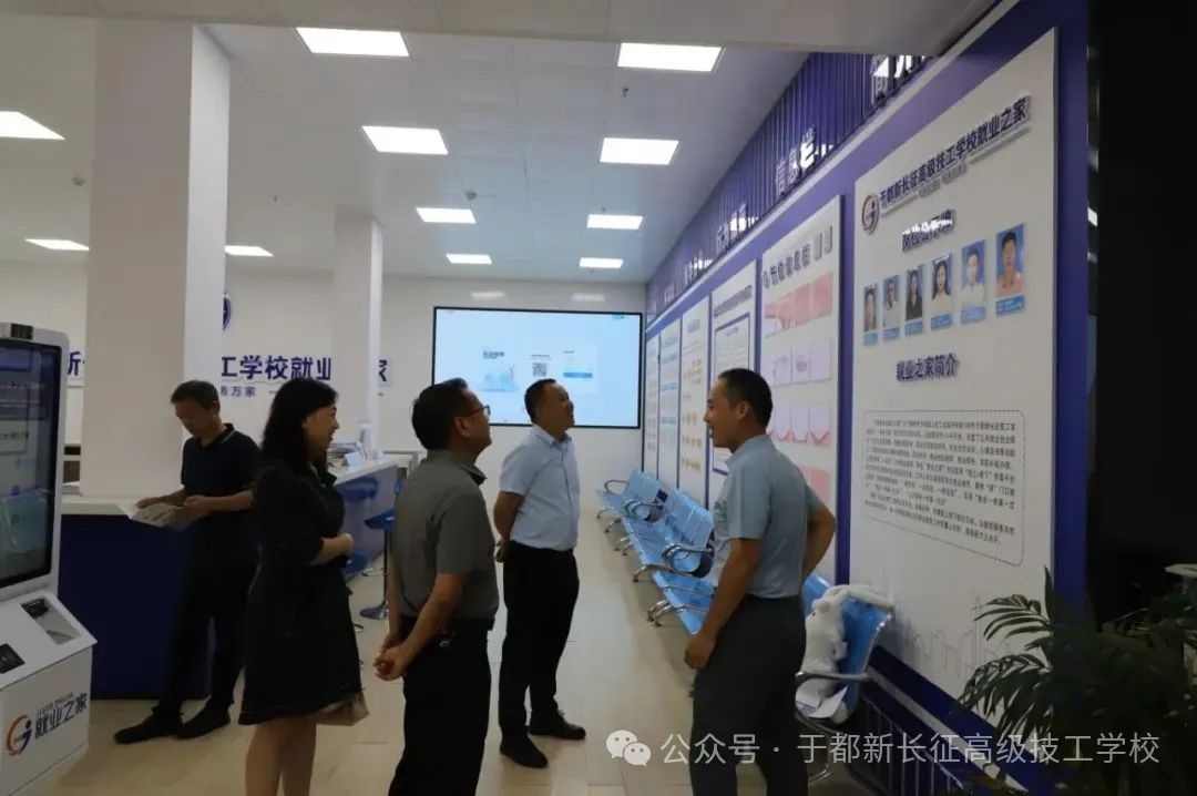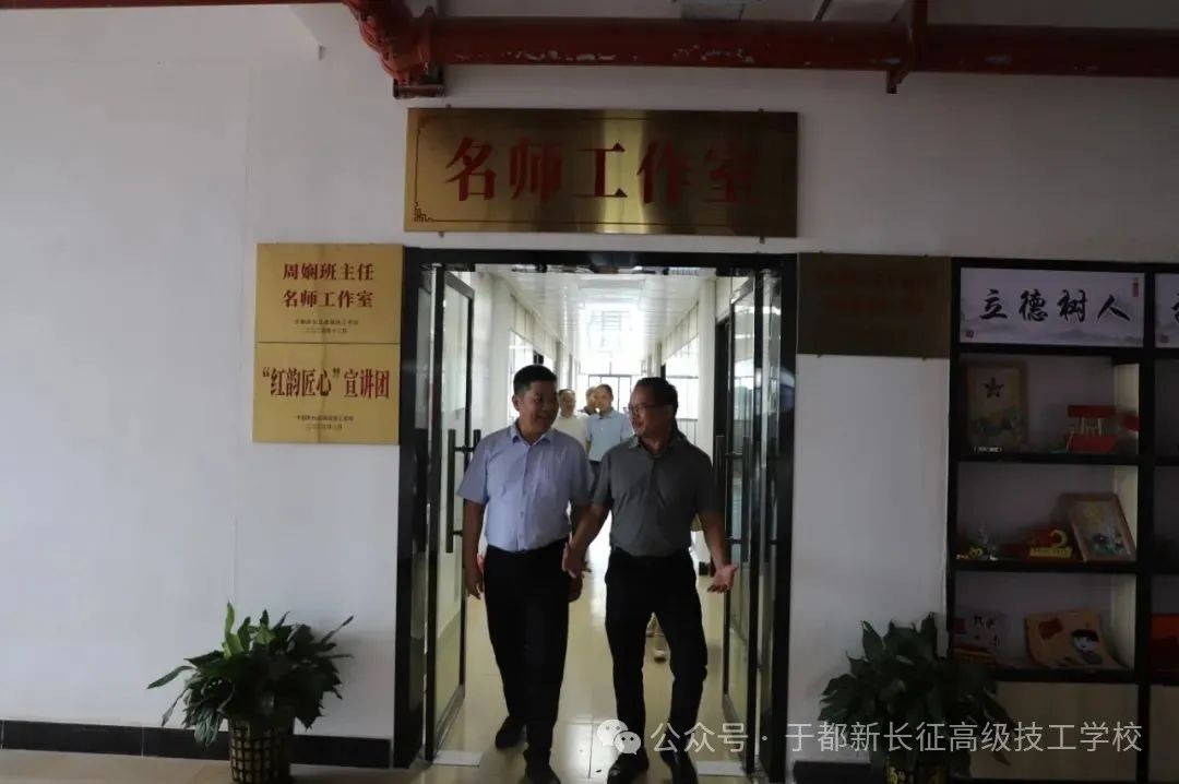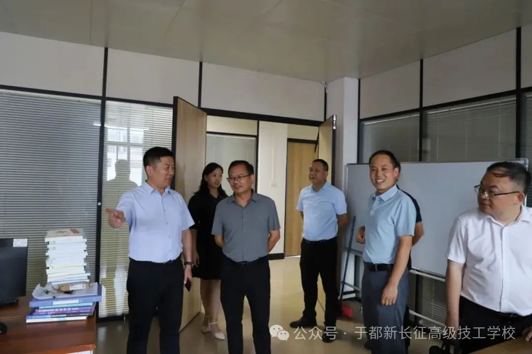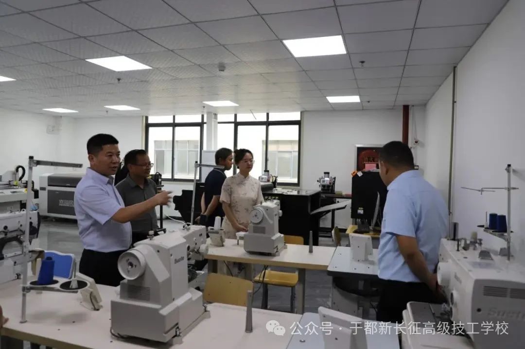 冯勇校长一行在我校党支部书记、校长管青春等领导的陪同下,依次参观了学校“5+2”就业之家、红韵匠心厅、江西省技工院校思政课刘春林名师工作室、周娴班主任名师工作室、全媒体运营工作室、于都县省级服装产业职业技能公共实训基地等教学、实训场所,深入了解我校的办学理念、特色文化及实训设施设备,对我校“以匠育才、以德树人”的教育实践给予了高度评价。