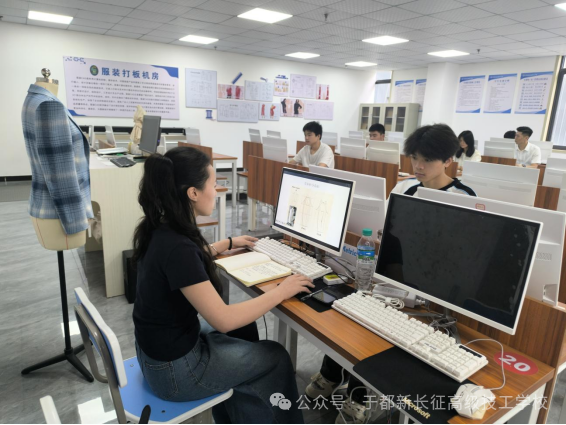在于都县省级服装产业职业技能公共实训基地,宋成龙以“旁听生”的身份,全程跟听了王菲老师主讲的暑期备赛集训课——“女式合体上衣CAD制版”。实训室内,键盘鼠标的敲击声与王菲老师娓娓的讲解声交织,她以扎实的专业功底,借助先进的CAD软件,将女性合体上衣从人体工学解析、核心版型设计到数字化制版的全流程清晰呈现。