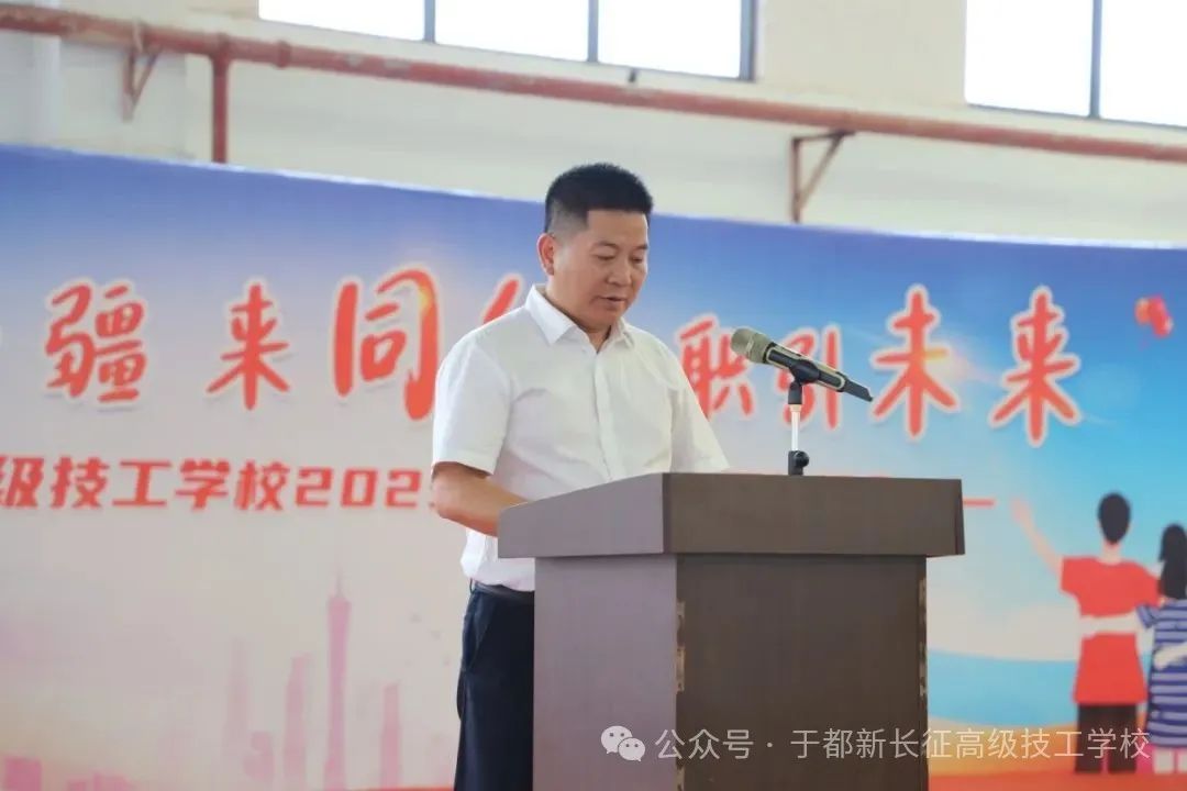 六月的骄阳点燃青春的热忱,离别的笙箫奏响启程的号角。6月29日上午,于都新长征高级技工学校2025届全体毕业生及新疆阿克陶培训学员,在学校体艺馆迎来了一场属于荣耀与机遇的盛会——“骊歌启航·疆来同行·职引未来”2025届毕业典礼暨校园招聘会。这不仅是为学子们精彩校园生活画上圆满句点的庄重仪式,更是助力他们扬帆职场、拥抱未来的关键桥梁。