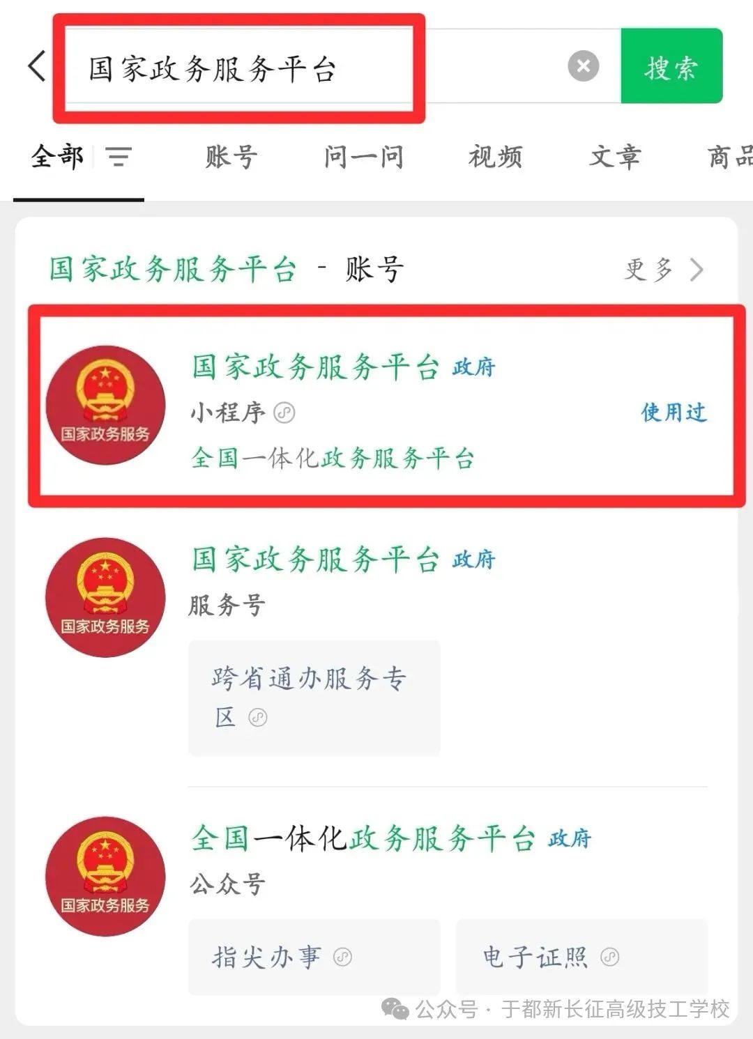 微信搜索"国家政务服务平台"