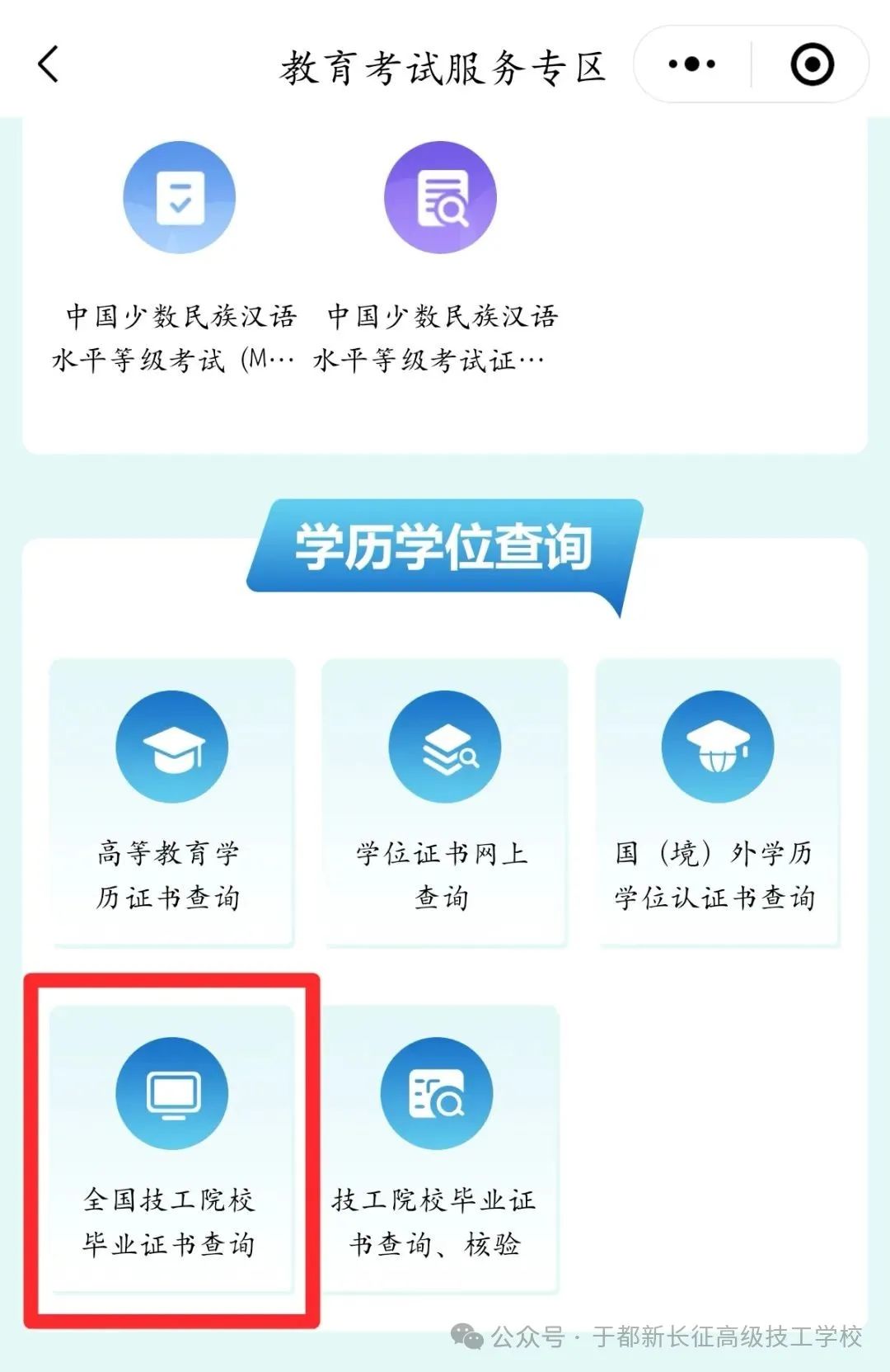 选择"学历学位查询"中的"技工院校"通道