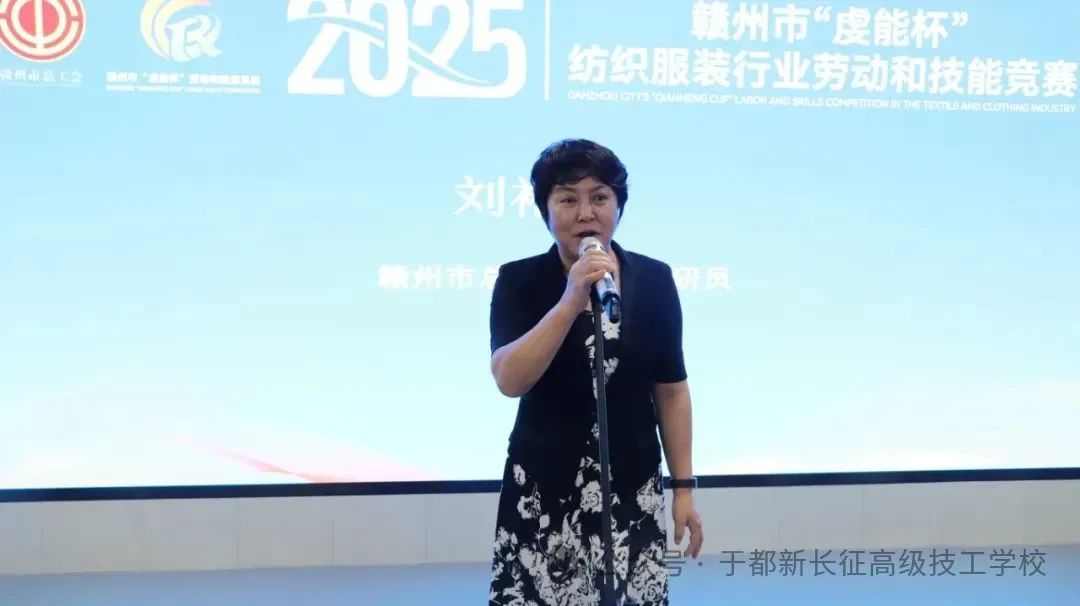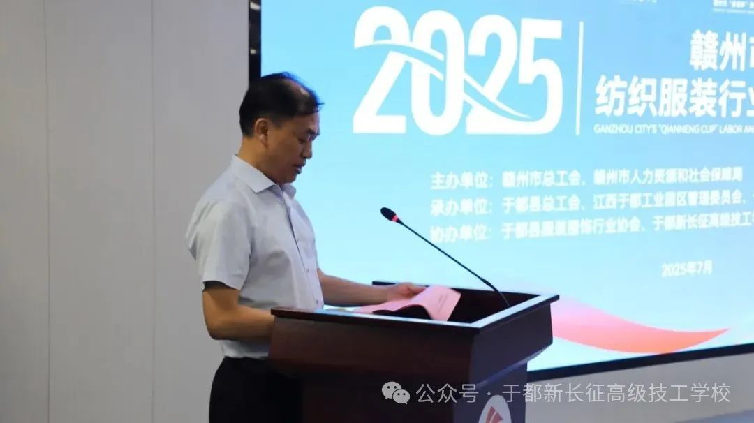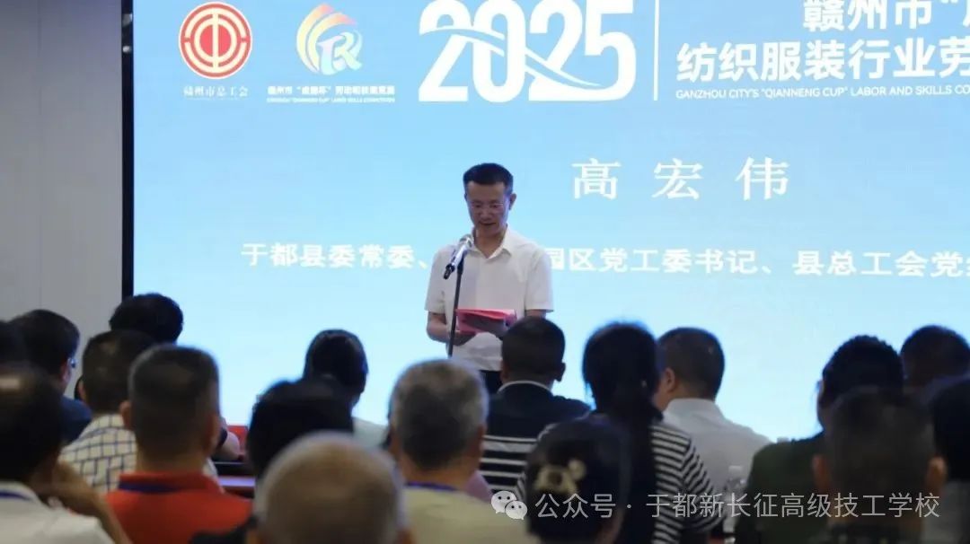 赣州市总工会二级调研员刘裕裕,于都县委常委、工业园区党工委书记,县总工会党组书记、主席高宏伟,于都县人力资源和社会保障局党组成员、副局长汪明华,于都新长征高级技工学校党支部书记、校长管青春,于都县工业园区管委会工会专职副主席熊佳丽,赣州市纺织服装行业协会、于都县服装服饰行业协会会长赵杰等领导嘉宾,以及来自全市各地的参赛选手、领队、裁判员等出席开幕仪式